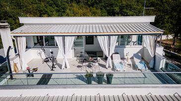Casa può accogliere 8 ospiti. I letti sono disposti nelle camere da letto che sono 4, su 170m2. Gli ospiti hanno a disposizione il proprio terrazzo per godere nelle calde serate estive. Dalla casa si gode di una vista sul mare. Per il piacere totale e il relax c'è il barbecue privato solo per gli ospiti di quest'alloggio. Nell'unità di alloggio si possono portare gli animali domestici con un pagamento supplementare.