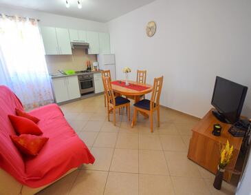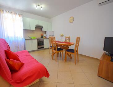 Appartamento può accogliere 5 ospiti. I letti sono disposti nelle camere da letto che sono 2, e nella camera di soggiorno, su 60m2. Gli ospiti hanno a disposizione il proprio terrazzo per godere nelle calde serate estive. Dall'appartamento si gode di una vista sul mare. Si può preparare il cibo utilizzando il barbecue comune. Nell'unità di alloggio si possono portare gli animali domestici con un pagamento supplementare.