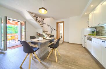 Casa può accogliere 5 ospiti. I letti sono disposti nelle camere da letto che sono 2, e nella camera di soggiorno, su 81m2. Gli ospiti hanno a disposizione il proprio terrazzo per godere nelle calde serate estive.