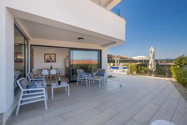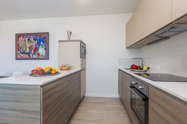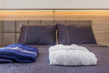 Appartamento può accogliere 6 ospiti. I letti sono disposti nelle camere da letto che sono 2, e nella camera di soggiorno, su 75m2. Gli ospiti hanno a disposizione il proprio terrazzo per godere nelle calde serate estive. Si può preparare il cibo utilizzando il barbecue comune. Durante il soggiorno gli ospiti possono utilizzare la piscina comune. Arrivati nell'unità d'alloggio i clienti devono pagare un deposito (il prezzo è indicato sul sito).