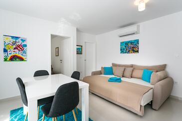 Appartamento può accogliere 4 ospiti. I letti sono disposti nelle camere da letto che sono 2, su 56m2. Gli ospiti hanno a disposizione il proprio terrazzo per godere nelle calde serate estive.