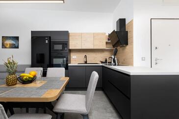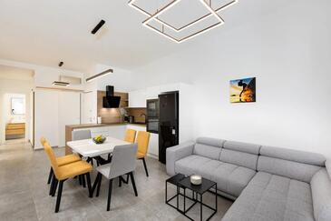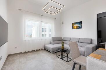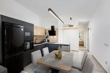 Appartamento può accogliere 4 ospiti. I letti sono disposti nelle camere da letto che sono 2, su 63m2. Gli ospiti hanno a disposizione il proprio terrazzo per godere nelle calde serate estive.