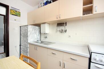 Appartamento può accogliere 5 ospiti. I letti sono disposti nelle camere da letto che sono 3, su 42m2. Gli ospiti hanno a disposizione il proprio terrazzo per godere nelle calde serate estive. Dall'appartamento si gode di una vista sul mare. Si può preparare il cibo utilizzando il barbecue comune.