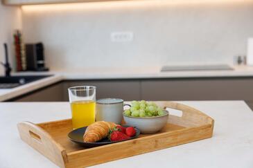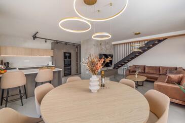 Casa può accogliere 8 ospiti. I letti sono disposti nelle camere da letto che sono 3, e nella camera di soggiorno, su 85m2. Dalla casa si gode di una vista sul mare. Per il piacere totale e il relax c'è il barbecue privato solo per gli ospiti di quest'alloggio. Durante il soggiorno gli ospiti si possono rilassare nella piscina privata. Nell'unità di alloggio si possono portare gli animali domestici con un pagamento supplementare. L'unità di alloggio prenotata non ha ne balcone ne terrazzo. Le stanze dell'unità d'alloggio non sono connesse in un insieme. Arrivati nell'unità d'alloggio i clienti devono pagare un deposito (il prezzo è indicato sul sito).