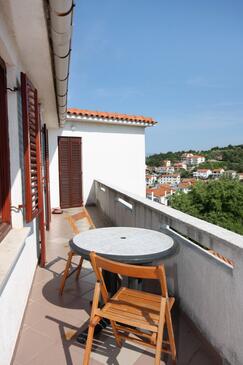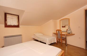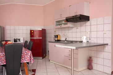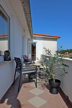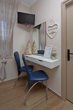 Appartamento può accogliere 6 ospiti. I letti sono disposti nelle camere da letto che sono 2, su 102m2. Gli ospiti hanno a disposizione il proprio terrazzo per godere nelle calde serate estive. Dall'appartamento si gode di una vista sul mare. Per il piacere totale e il relax c'è il barbecue privato solo per gli ospiti di quest'alloggio.