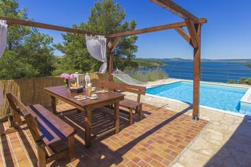 Casa può accogliere 4 ospiti. I letti sono disposti nelle camere da letto che sono 2, su 44m2. Gli ospiti hanno a disposizione il proprio terrazzo per godere nelle calde serate estive. Dalla casa si gode di una vista sul mare. Per il piacere totale e il relax c'è il barbecue privato solo per gli ospiti di quest'alloggio. Durante il soggiorno gli ospiti si possono rilassare nella piscina privata.