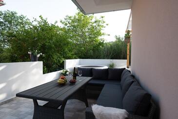 Casa può accogliere 6 ospiti. I letti sono disposti nelle camere da letto che sono 3, e nella camera di soggiorno, su 88m2. Gli ospiti hanno a disposizione il proprio terrazzo per godere nelle calde serate estive. Si può preparare il cibo utilizzando il barbecue comune.