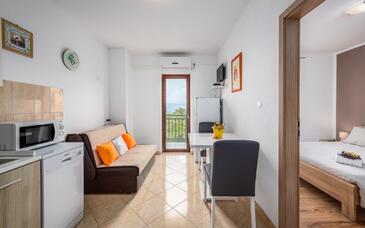 Appartamento può accogliere 5 ospiti. I letti sono disposti nelle camere da letto che sono 2, e nella camera di soggiorno, su 49m2. Gli ospiti hanno a disposizione il proprio balcone per godere delle calde serate estive. Dall'appartamento si gode di una vista sul mare. Si può preparare il cibo utilizzando il barbecue comune. Durante il soggiorno gli ospiti possono utilizzare la piscina comune. Nell'unità di alloggio si possono portare gli animali domestici con un pagamento supplementare.