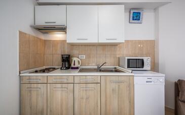 Appartamento può accogliere 5 ospiti. I letti sono disposti nelle camere da letto che sono 2, e nella camera di soggiorno, su 52m2. Gli ospiti hanno a disposizione il proprio balcone per godere delle calde serate estive. Dall'appartamento si gode di una vista sul mare. Si può preparare il cibo utilizzando il barbecue comune. Durante il soggiorno gli ospiti possono utilizzare la piscina comune. Nell'unità di alloggio si possono portare gli animali domestici con un pagamento supplementare.