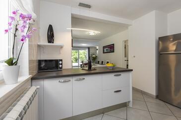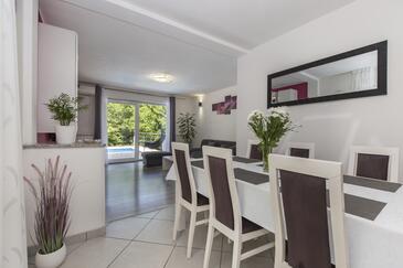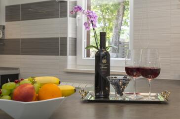 Casa può accogliere 6 ospiti. I letti sono disposti nelle camere da letto che sono 3, su 101m2. Gli ospiti hanno a disposizione il proprio terrazzo per godere nelle calde serate estive. Per il piacere totale e il relax c'è il barbecue privato solo per gli ospiti di quest'alloggio. Durante il soggiorno gli ospiti si possono rilassare nella piscina privata.