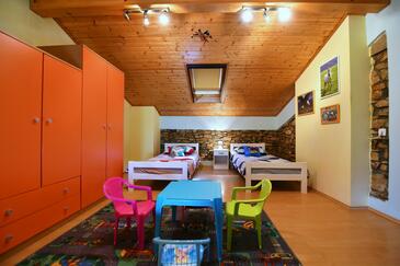 Casa può accogliere 6 ospiti. I letti sono disposti nelle camere da letto che sono 3, su 102m2. Gli ospiti hanno a disposizione il proprio terrazzo per godere nelle calde serate estive. Per il piacere totale e il relax c'è il barbecue privato solo per gli ospiti di quest'alloggio. Durante il soggiorno gli ospiti si possono rilassare nella piscina privata. Nell'unità di alloggio si possono portare gli animali domestici con un pagamento supplementare. Arrivati nell'unità d'alloggio i clienti devono pagare un deposito (il prezzo è indicato sul sito).