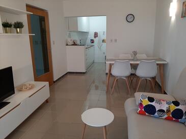 Appartamento può accogliere 4 ospiti. I letti sono disposti nelle camere da letto che sono 2, su 57m2. Gli ospiti hanno a disposizione il proprio terrazzo per godere nelle calde serate estive. Si può preparare il cibo utilizzando il barbecue comune.