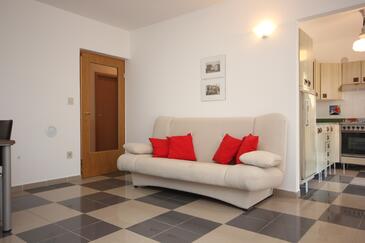 Appartamento può accogliere 4 ospiti. I letti sono disposti nelle camere da letto che sono 2, su 57m2. Gli ospiti hanno a disposizione il proprio terrazzo per godere nelle calde serate estive. Si può preparare il cibo utilizzando il barbecue comune.