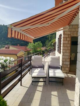 Appartamento può accogliere 4 ospiti. I letti sono disposti nelle camere da letto che sono 2, su 45m2. Gli ospiti hanno a disposizione il proprio terrazzo per godere nelle calde serate estive. Dall'appartamento si gode di una vista sul mare. Si può preparare il cibo utilizzando il barbecue comune.