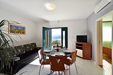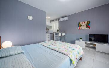 Appartamento può accogliere 6 ospiti. I letti sono disposti nelle camere da letto che sono 2, e nella camera di soggiorno, su 46m2. Gli ospiti hanno a disposizione il proprio terrazzo per godere nelle calde serate estive. Dall'appartamento si gode di una vista sul mare. Si può preparare il cibo utilizzando il barbecue comune. Nell'unità di alloggio si possono portare gli animali domestici con un pagamento supplementare.