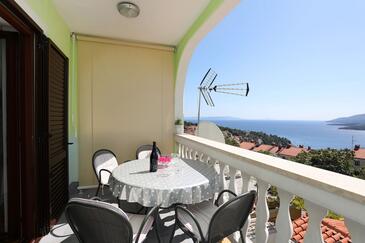 Appartamento può accogliere 5 ospiti. I letti sono disposti nelle camere da letto che sono 2, su 52m2. Gli ospiti hanno a disposizione il proprio balcone per godere delle calde serate estive. Dall'appartamento si gode di una vista sul mare. Si può preparare il cibo utilizzando il barbecue comune.