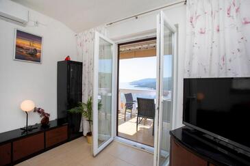 Appartamento può accogliere 5 ospiti. I letti sono disposti nelle camere da letto che sono 2, su 52m2. Gli ospiti hanno a disposizione il proprio balcone per godere delle calde serate estive. Dall'appartamento si gode di una vista sul mare. Si può preparare il cibo utilizzando il barbecue comune.
