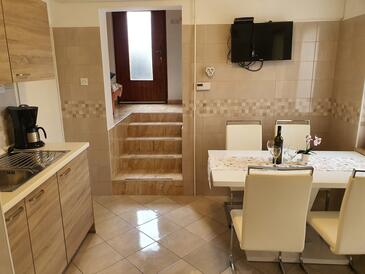 Appartamento può accogliere 5 ospiti. I letti sono disposti nelle camere da letto che sono 2, e nella camera di soggiorno, su 35m2. Gli ospiti hanno a disposizione il proprio terrazzo per godere nelle calde serate estive. Dall'appartamento si gode di una vista sul mare. Si può preparare il cibo utilizzando il barbecue comune.