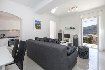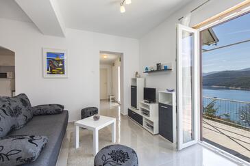 Appartamento può accogliere 4 ospiti. I letti sono disposti nelle camere da letto che sono 2, su 52m2. Gli ospiti hanno a disposizione il proprio terrazzo per godere nelle calde serate estive. Dall'appartamento si gode di una vista sul mare.