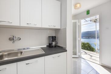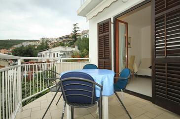 Appartamento può accogliere 4 ospiti. I letti sono disposti nelle camere da letto che sono 2, su 52m2. Gli ospiti hanno a disposizione il proprio terrazzo per godere nelle calde serate estive. Dall'appartamento si gode di una vista sul mare.