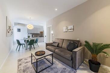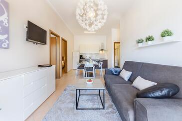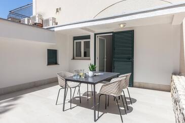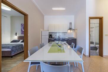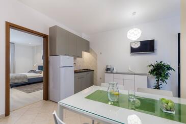 Appartamento può accogliere 6 ospiti. I letti sono disposti nelle camere da letto che sono 3, su 70m2. Gli ospiti hanno a disposizione il proprio terrazzo per godere nelle calde serate estive. Dall'appartamento si gode di una vista sul mare. Si può preparare il cibo utilizzando il barbecue comune. Nell'unità di alloggio si possono portare gli animali domestici con un pagamento supplementare.