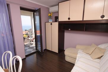 Appartamento può accogliere 4 ospiti. I letti sono disposti nelle camere da letto che sono 1, e nella camera di soggiorno, su 27m2. Gli ospiti hanno a disposizione il proprio terrazzo per godere nelle calde serate estive. Dall'appartamento si gode di una vista sul mare. Si può preparare il cibo utilizzando il barbecue comune.