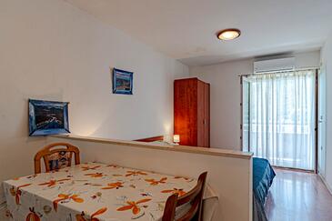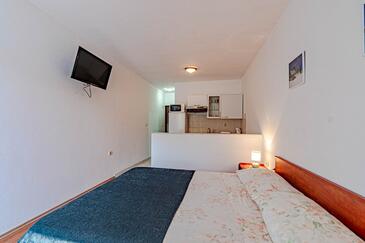 Monolocale può accogliere 2 ospiti. I letti sono disposti nelle camere da letto che sono 1, su 23m2. Gli ospiti hanno a disposizione il proprio terrazzo per godere nelle calde serate estive. Dal monolocale si gode di una vista sul mare. Si può preparare il cibo utilizzando il barbecue comune. Nell'unità di alloggio si possono portare gli animali domestici con un pagamento supplementare.