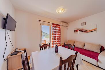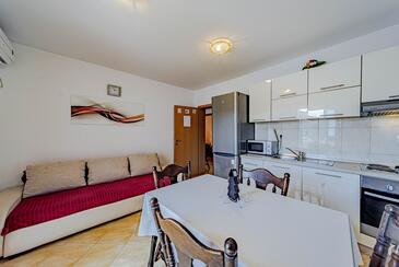 Appartamento può accogliere 6 ospiti. I letti sono disposti nelle camere da letto che sono 2, e nella camera di soggiorno, su 46m2. Gli ospiti hanno a disposizione il proprio balcone per godere delle calde serate estive. Dall'appartamento si gode di una vista sul mare.