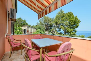 Appartamento può accogliere 5 ospiti. I letti sono disposti nelle camere da letto che sono 2, su 49m2. Gli ospiti hanno a disposizione il proprio terrazzo per godere nelle calde serate estive. Dall'appartamento si gode di una vista sul mare.