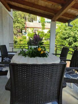 Appartamento può accogliere 8 ospiti. I letti sono disposti nelle camere da letto che sono 4, su 100m2. Gli ospiti hanno a disposizione il proprio terrazzo per godere nelle calde serate estive. Dall'appartamento si gode di una vista sul mare. Si può preparare il cibo utilizzando il barbecue comune. Nell'unità di alloggio si possono portare gli animali domestici senza alcun pagamento supplementare.