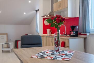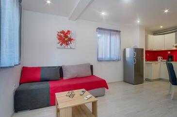 Appartamento può accogliere 6 ospiti. I letti sono disposti nelle camere da letto che sono 2, e nella camera di soggiorno, su 54m2. Gli ospiti hanno a disposizione il proprio terrazzo per godere nelle calde serate estive. Dall'appartamento si gode di una vista sul mare. Per il piacere totale e il relax c'è il barbecue privato solo per gli ospiti di quest'alloggio. Nell'unità di alloggio si possono portare gli animali domestici con un pagamento supplementare.
