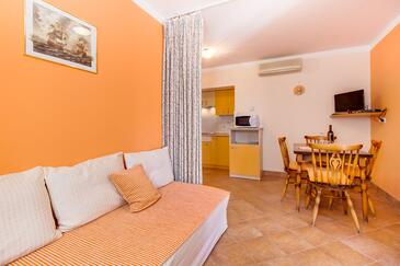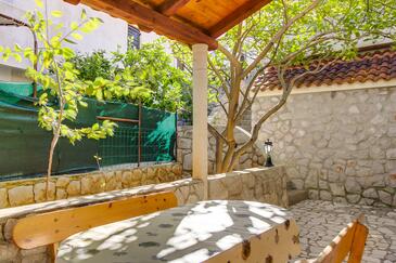 Appartamento può accogliere 4 ospiti. I letti sono disposti nelle camere da letto che sono 2, su 52m2. Gli ospiti hanno a disposizione il proprio terrazzo per godere nelle calde serate estive. Dall'appartamento si gode di una vista sul mare. Si può preparare il cibo utilizzando il barbecue comune.