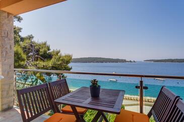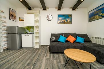 Appartamento può accogliere 4 ospiti. I letti sono disposti nelle camere da letto che sono 2, su 39m2. Gli ospiti hanno a disposizione il proprio terrazzo per godere nelle calde serate estive. Dall'appartamento si gode di una vista sul mare. Si può preparare il cibo utilizzando il barbecue comune. Nell'unità di alloggio si possono portare gli animali domestici con un pagamento supplementare. Altri clienti o proprietari passano per terrazzo dell'unità d'alloggio prenotata. Arrivati nell'unità d'alloggio i clienti devono pagare un deposito (il prezzo è indicato sul sito).
