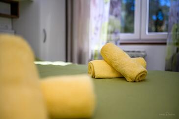 Appartamento può accogliere 4 ospiti. I letti sono disposti nelle camere da letto che sono 2, su 39m2. Gli ospiti hanno a disposizione il proprio terrazzo per godere nelle calde serate estive. Dall'appartamento si gode di una vista sul mare. Si può preparare il cibo utilizzando il barbecue comune. Nell'unità di alloggio si possono portare gli animali domestici con un pagamento supplementare. Altri clienti o proprietari passano per terrazzo dell'unità d'alloggio prenotata. Arrivati nell'unità d'alloggio i clienti devono pagare un deposito (il prezzo è indicato sul sito).