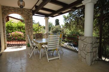 Appartamento può accogliere 7 ospiti. I letti sono disposti nelle camere da letto che sono 4, su 90m2. Gli ospiti hanno a disposizione il proprio terrazzo per godere nelle calde serate estive. Si può preparare il cibo utilizzando il barbecue comune.