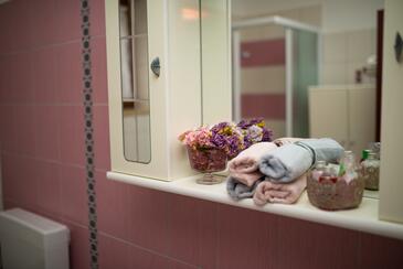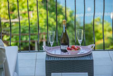Appartamento può accogliere 5 ospiti. I letti sono disposti nelle camere da letto che sono 2, e nella camera di soggiorno, su 79m2. Gli ospiti hanno a disposizione il proprio terrazzo per godere nelle calde serate estive. Dall'appartamento si gode di una vista sul mare. Si può preparare il cibo utilizzando il barbecue comune. Nell'unità di alloggio si possono portare gli animali domestici con un pagamento supplementare.
