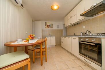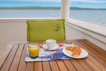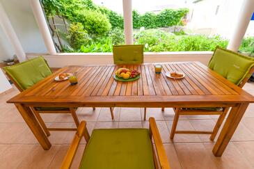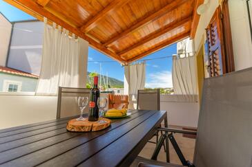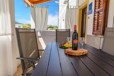 Appartamento può accogliere 4 ospiti. I letti sono disposti nelle camere da letto che sono 2, su 61m2. Gli ospiti hanno a disposizione il proprio terrazzo per godere nelle calde serate estive. Dall'appartamento si gode di una vista sul mare. Si può preparare il cibo utilizzando il barbecue comune.