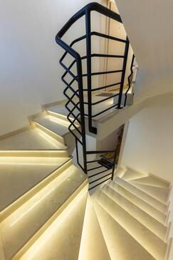 Appartamento può accogliere 5 ospiti. I letti sono disposti nelle camere da letto che sono 2, e nella camera di soggiorno, su 68m2. Gli ospiti hanno a disposizione il proprio terrazzo per godere nelle calde serate estive. Dall'appartamento si gode di una vista sul mare. Si può preparare il cibo utilizzando il barbecue comune.