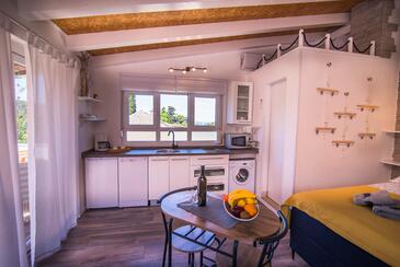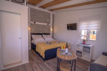 Monolocale può accogliere 2 ospiti. I letti sono disposti nelle camere da letto che sono 1, su 13m2. Gli ospiti hanno a disposizione il proprio terrazzo per godere nelle calde serate estive. Dal monolocale si gode di una vista sul mare.