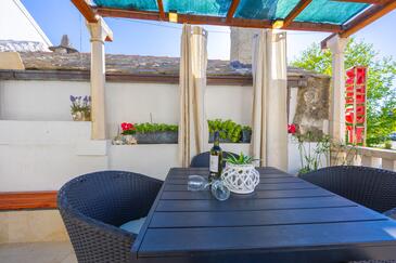Appartamento può accogliere 4 ospiti. I letti sono disposti nelle camere da letto che sono 2, su 56m2. Gli ospiti hanno a disposizione il proprio terrazzo per godere nelle calde serate estive. Dall'appartamento si gode di una vista sul mare. Si può preparare il cibo utilizzando il barbecue comune.