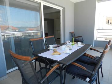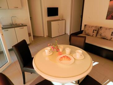 Appartamento può accogliere 8 ospiti. I letti sono disposti nelle camere da letto che sono 3, e nella camera di soggiorno, su 75m2. Gli ospiti hanno a disposizione il proprio balcone per godere delle calde serate estive. Dall'appartamento si gode di una vista sul mare. Si può preparare il cibo utilizzando il barbecue comune. Nell'unità di alloggio si possono portare gli animali domestici con un pagamento supplementare.