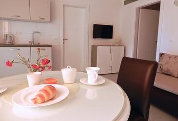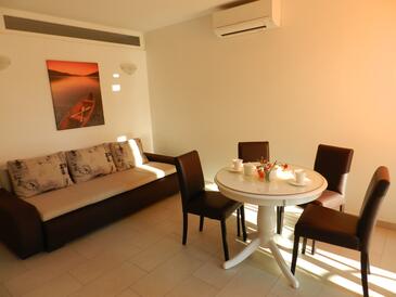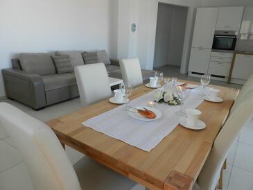 Appartamento può accogliere 8 ospiti. I letti sono disposti nelle camere da letto che sono 3, e nella camera di soggiorno, su 75m2. Gli ospiti hanno a disposizione il proprio balcone per godere delle calde serate estive. Dall'appartamento si gode di una vista sul mare. Si può preparare il cibo utilizzando il barbecue comune. Nell'unità di alloggio si possono portare gli animali domestici con un pagamento supplementare.