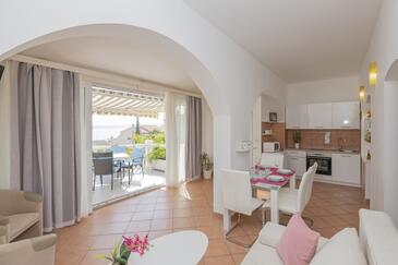 Appartamento può accogliere 4 ospiti. I letti sono disposti nelle camere da letto che sono 2, su 59m2. Gli ospiti hanno a disposizione il proprio terrazzo per godere nelle calde serate estive. Dall'appartamento si gode di una vista sul mare. Nell'unità di alloggio si possono portare gli animali domestici con un pagamento supplementare.