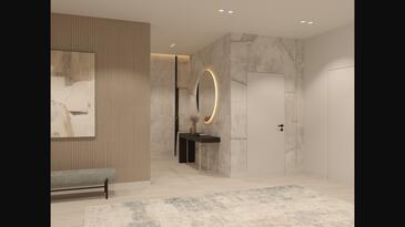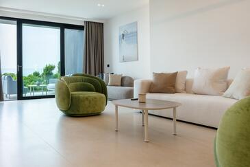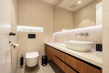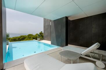 Casa può accogliere 8 ospiti. I letti sono disposti nelle camere da letto che sono 4, su 211m2. Gli ospiti hanno a disposizione il proprio terrazzo per godere nelle calde serate estive. Dalla casa si gode di una vista sul mare. Per il piacere totale e il relax c'è il barbecue privato solo per gli ospiti di quest'alloggio. Durante il soggiorno gli ospiti si possono rilassare nella piscina privata. Nell'unità di alloggio si possono portare gli animali domestici con un pagamento supplementare.