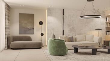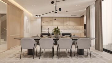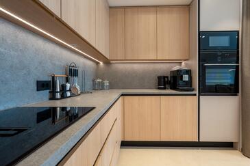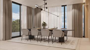 Casa può accogliere 8 ospiti. I letti sono disposti nelle camere da letto che sono 4, su 211m2. Gli ospiti hanno a disposizione il proprio terrazzo per godere nelle calde serate estive. Dalla casa si gode di una vista sul mare. Per il piacere totale e il relax c'è il barbecue privato solo per gli ospiti di quest'alloggio. Durante il soggiorno gli ospiti si possono rilassare nella piscina privata. Nell'unità di alloggio si possono portare gli animali domestici con un pagamento supplementare.