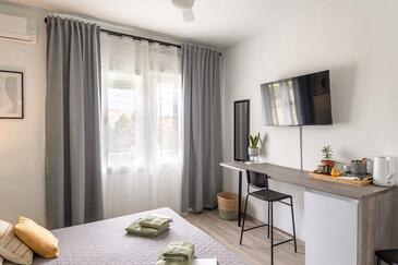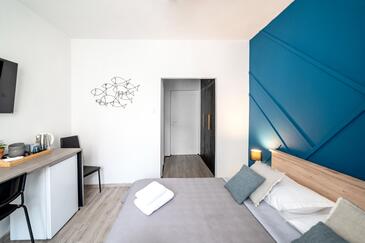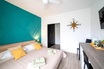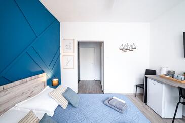 Camera può accogliere 2 ospiti. I letti sono disposti nelle camere da letto che sono 1, su 20m2. Gli ospiti hanno a disposizione il proprio balcone per godere delle calde serate estive. L'unità di alloggio prenotata è una camera con bagno proprio senza possibilità d'utilizzo della cucina.