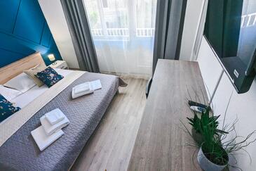 Camera può accogliere 2 ospiti. I letti sono disposti nelle camere da letto che sono 1, su 20m2. Gli ospiti hanno a disposizione il proprio balcone per godere delle calde serate estive. L'unità di alloggio prenotata è una camera con bagno proprio senza possibilità d'utilizzo della cucina.