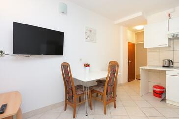 Appartamento può accogliere 7 ospiti. I letti sono disposti nelle camere da letto che sono 2, e nella camera di soggiorno, su 51m2. Gli ospiti hanno a disposizione il proprio terrazzo per godere nelle calde serate estive. Si può preparare il cibo utilizzando il barbecue comune.