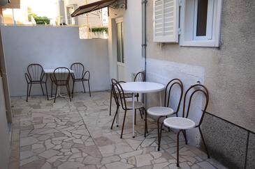 Appartamento può accogliere 4 ospiti. I letti sono disposti nelle camere da letto che sono 2, su 36m2. Gli ospiti hanno a disposizione il proprio terrazzo per godere nelle calde serate estive. Si può preparare il cibo utilizzando il barbecue comune.