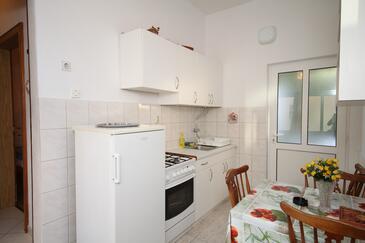 Appartamento può accogliere 4 ospiti. I letti sono disposti nelle camere da letto che sono 2, su 36m2. Gli ospiti hanno a disposizione il proprio terrazzo per godere nelle calde serate estive. Si può preparare il cibo utilizzando il barbecue comune.